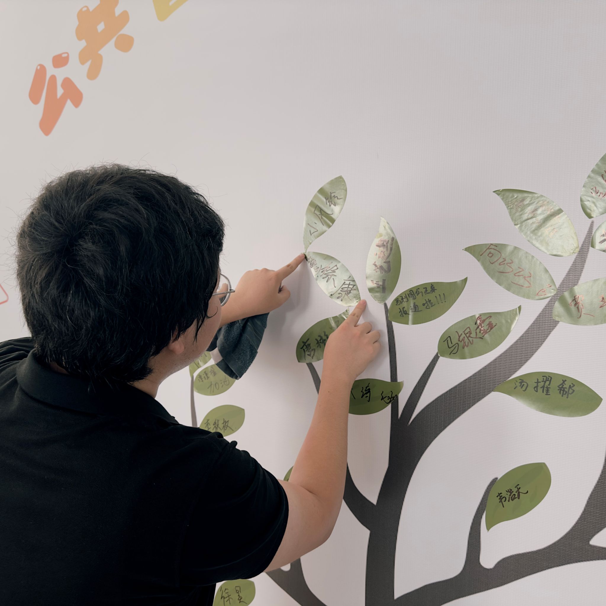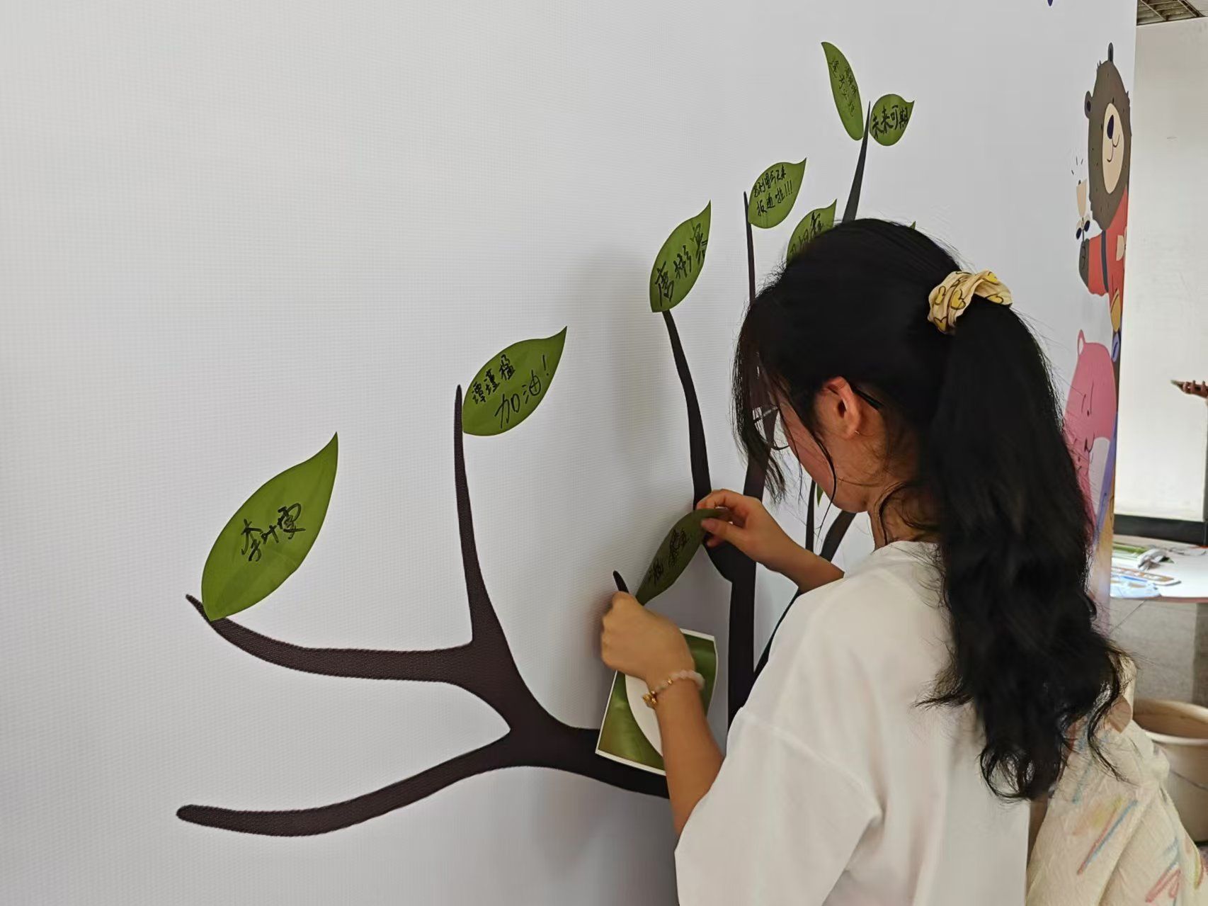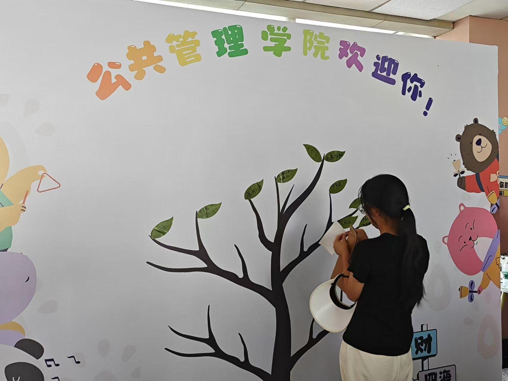 每一位新生在树叶上写下对即将到来大学生活的期望,写下新的一“叶“,然后贴在象征JRKAN直播网