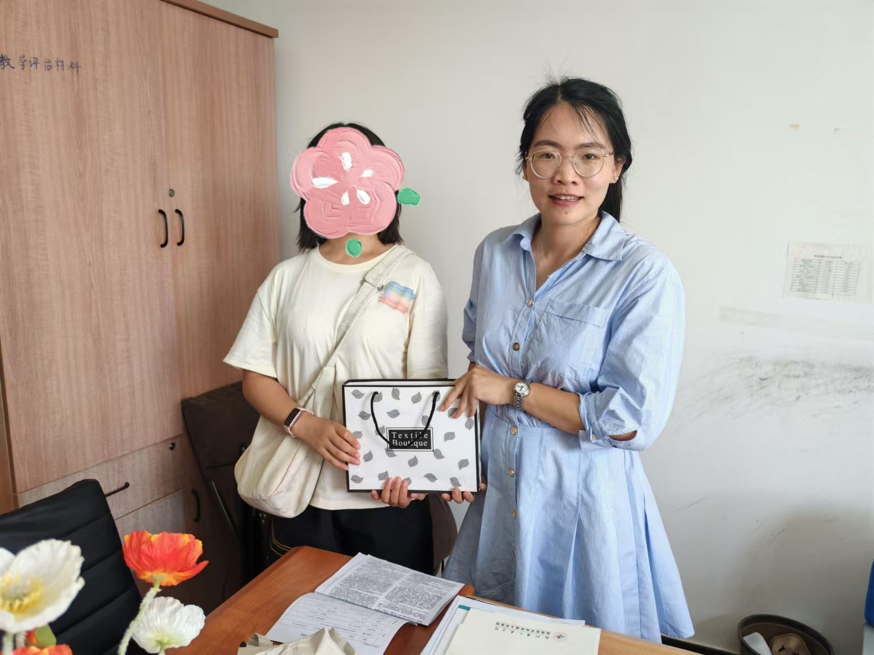 在专业楼里,志愿者们耐心细致地帮助新生们完成报道工作,学长学姐们翻开入学通知书仔细核验信息,递上新生礼品,在三言两语地热切交谈中送上关于新学期新生活的诚挚祝福。