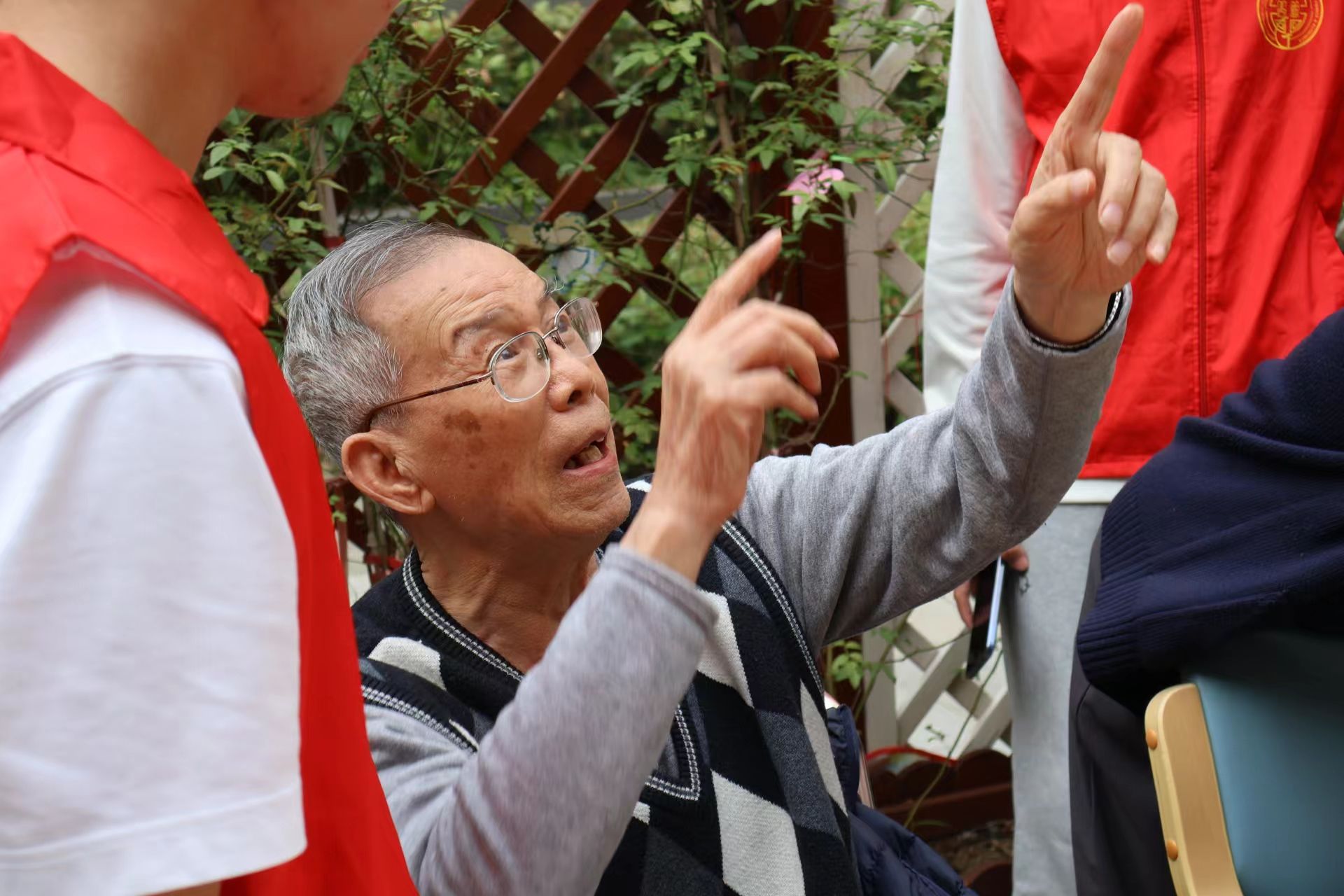 蝉鸣声清脆,鸟叫声婉转!一位位慈眉善目、白发红颜的老爷爷老奶奶们在护理人员的牵引下进入小院,志愿者们纷纷与老人家们打招呼,老人们也露出和蔼的微笑,接连挥手回应,本来安静的小院顿时热闹了起来!