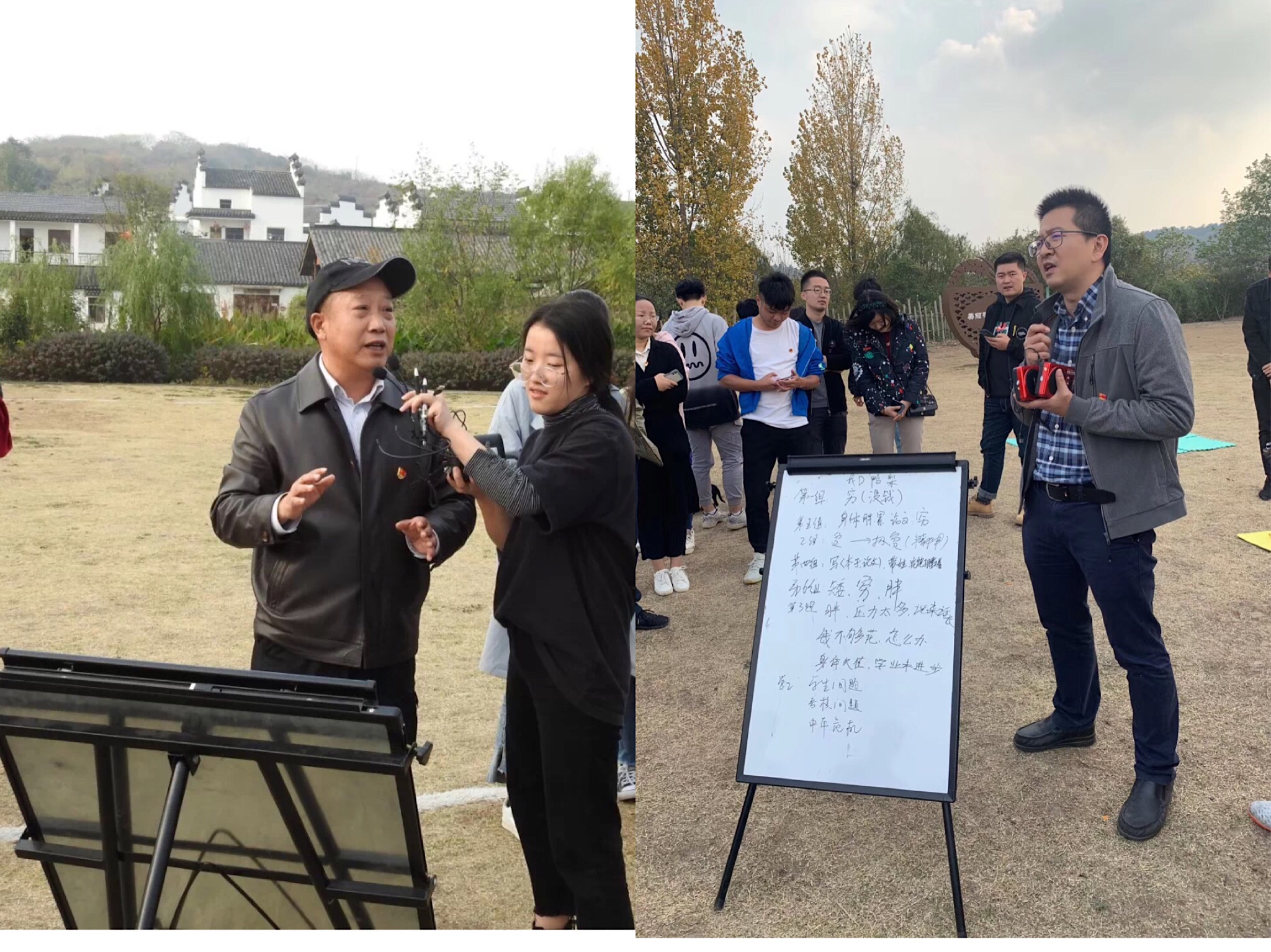 启动仪式后,进行了减压系列游戏。通过跳兔子舞、模仿表情包、爱的魔力转圈圈、踩爆压力气球等游戏方式帮助老师们释放压力,在游戏过程中,老师们积极参与,通力合作。在讲台上,他们严谨教学、诲人不倦;在游戏中,他们释放自我、返璞归真。游戏过后老师们表示在玩游戏的过程中自己感觉很轻松,心里的压力得了很好的释放。在记录压力环节,老师们写出了自己方方面面的压力,“钱不够花”“工作压力很大,要面临学生问题、考核问题以及中年危机等”“带娃难”“论文写不完”多数老师都说到,“长胖”也是大多数老师的烦恼和压力。黄斌院长帮助老师们解压:“教师是高尚的职业,虽然教师收入在国民收入分配序列中比较靠后,但是选择了做教师就得耐得住清贫。年轻人要多多锻炼预防长胖。”胡永远书记向在场所有人推荐了《哲学的慰藉》一书,希望能够帮助教师以及学生减轻压力。