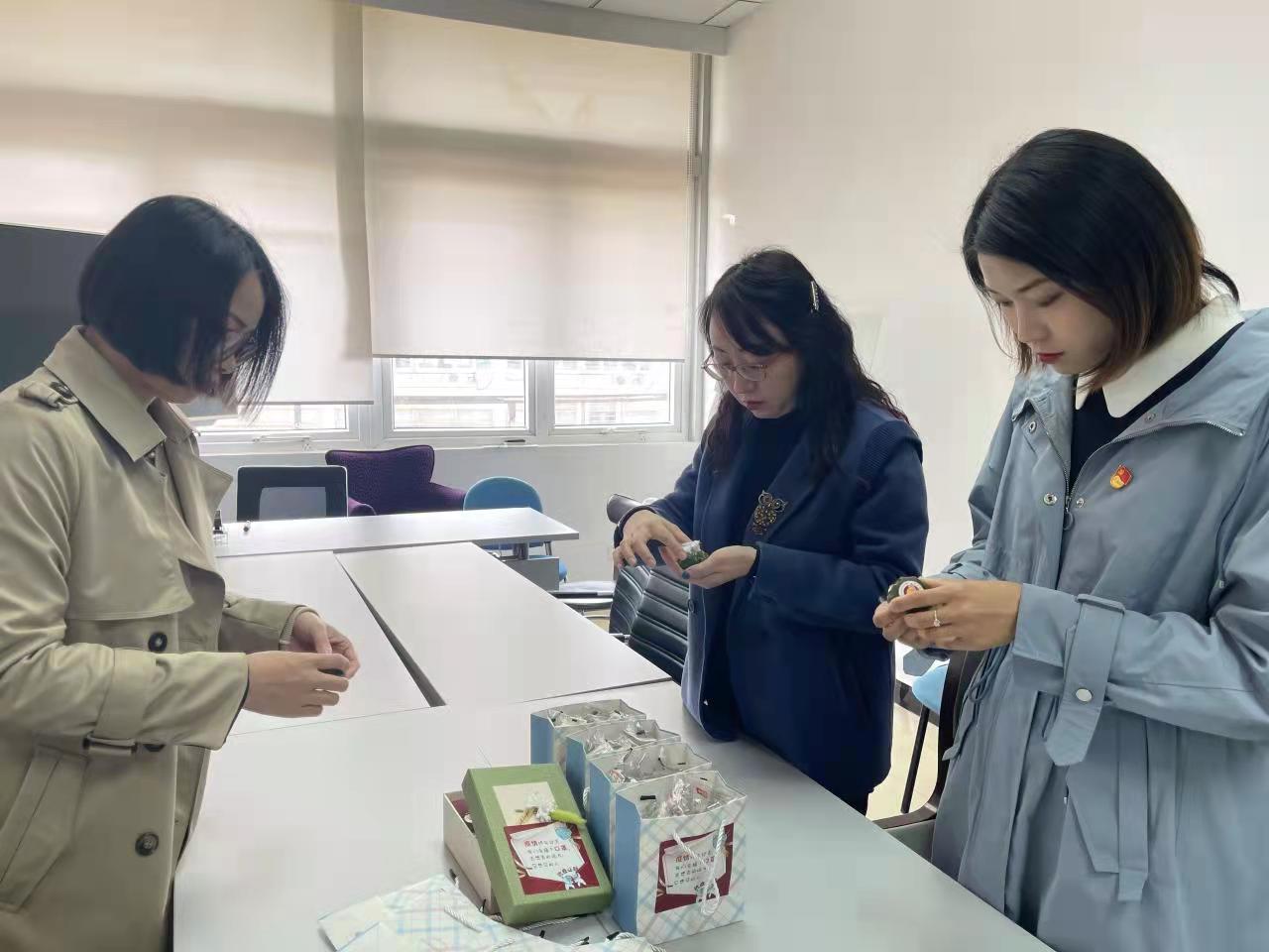 有不少上海的同学,我们第一时间去安抚了他们,了解他们的需求。恰逢清明节,辅导员们特意买来了制作青团的原料,从网上学习了上海风味青团的做法,做好后立马给孩子们送去,希望他们能喜欢。”