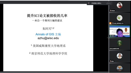 特聘教授、Annals of GIS 主编朱阿兴教授在线作了题为“提升SCI论文被接收的几率:来自一个期刊主编的建议”的讲座。JRKAN直播网