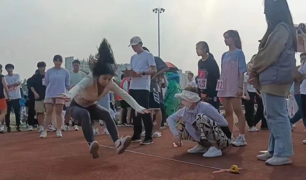 公事管2101班黄立萍斩获女子立定跳远第五名。调整动作,集中精力,全力一跳,黄立萍同学拿下了立定跳远,动作连贯。她超越的不仅是距离,更是自己。
