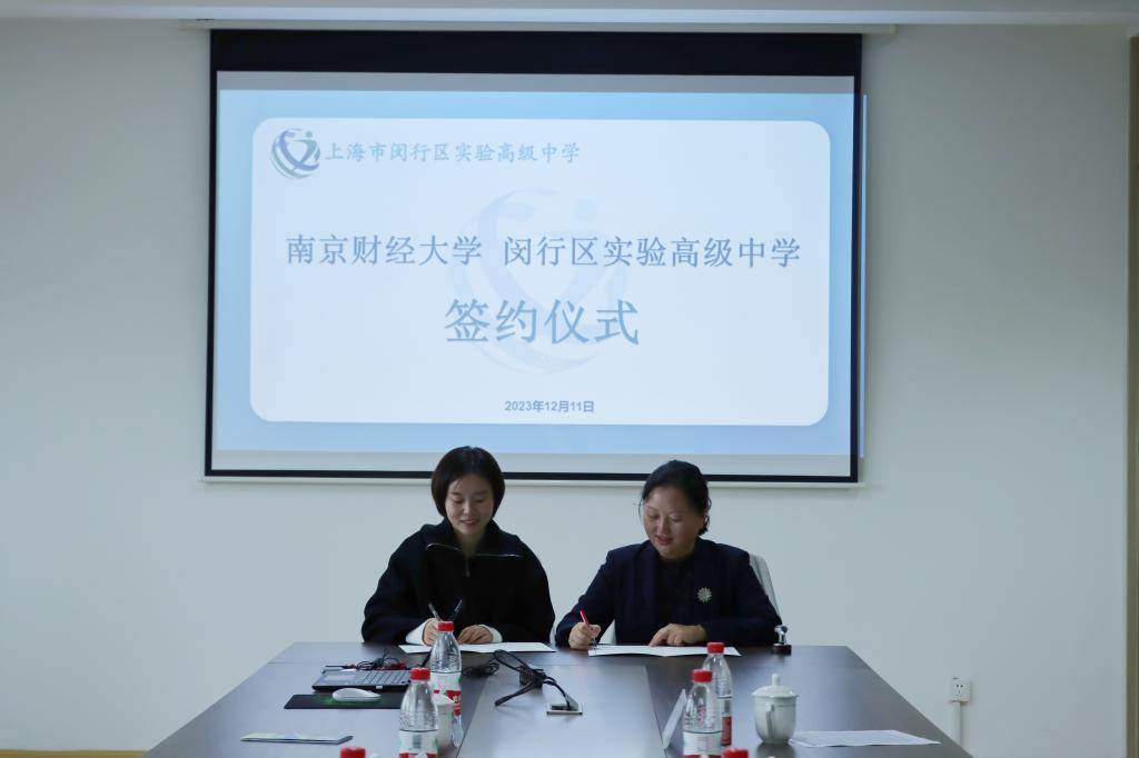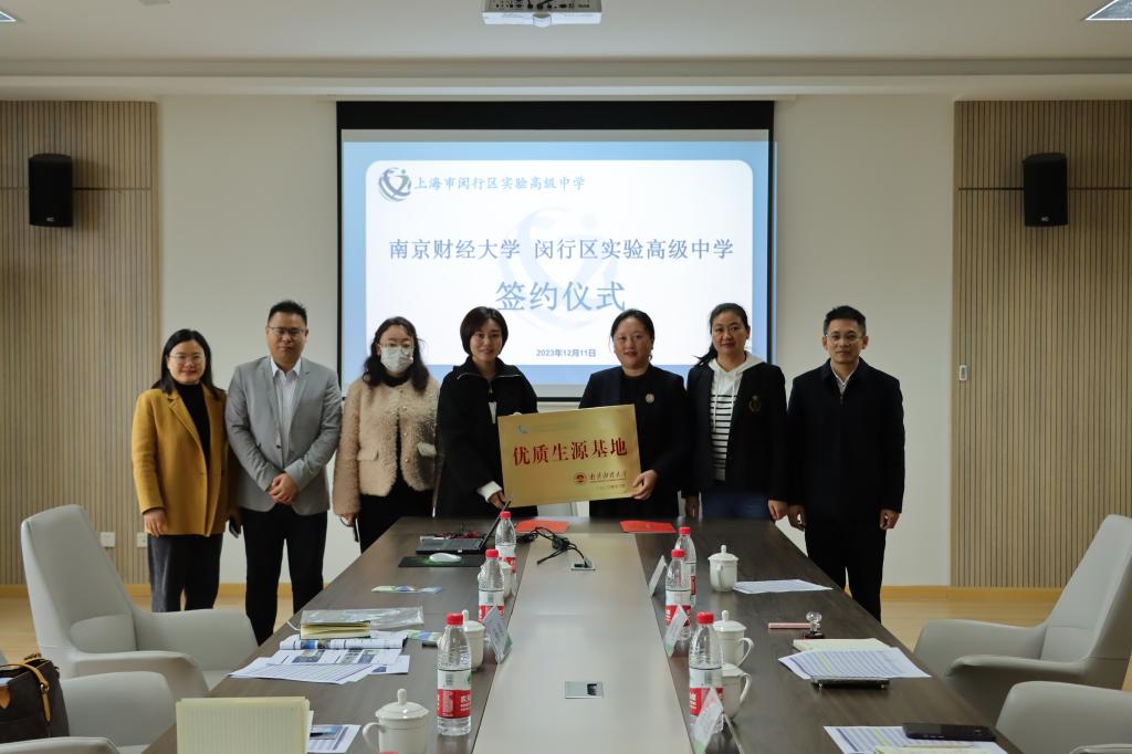 座谈会后,我校代表与上海市闵行区实验高级中学代表签订《南京财经大学优质生源基地合作协议书》,并授予“南京财经大学优质生源基地”铜牌。