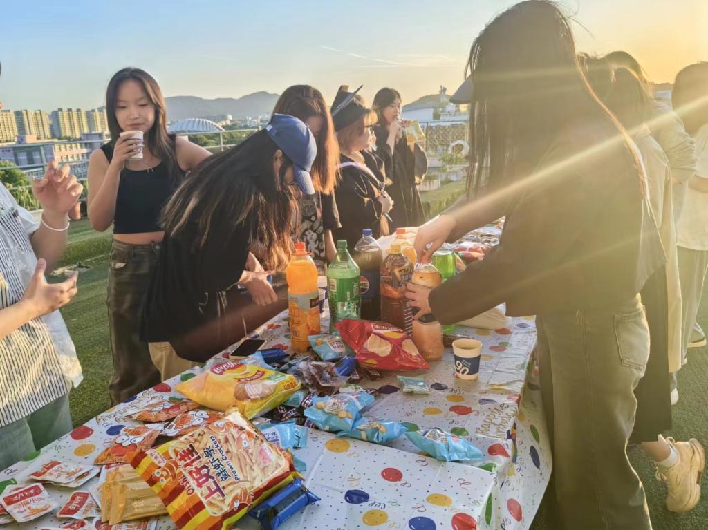 不知以何种心情来到五楼的草坪,初入校园时的毕业遥遥无期,转眼就要各奔东西,最后抛开所有思绪,用真挚与愉悦去对待最后的时光。饮水思源,匆匆四年,也忘不了导员与老师的陪伴,尽情的与老师相拥,感慨老师的不易。学子上台深情歌唱,唱的是“欲买桂花同载酒,终不似,少年游”的潇洒恣意;唱的是“春风得意马蹄疾,一日看尽长安花”的意气风发;唱的是“恰同学少年,风华正茂:书生意气,挥斥方遒”的豪情壮志。唱给自己已逝的青春,也是唱给美好的未来。老师倾吐绵延,回味着学生初来时的模样,四年又四年,他们如卷卷浪涛,送走了一群又一群船帆。四季相伴,走过春日的小路,欣赏过夏日的繁星,感受过秋日的落叶,玩闹过冬日的飞雪。照片一次次定格,那是属于我们独一无二的匆匆岁月,拿起一包零食同好友分享,拿起手机为死党拍照,看着屏幕上滑动的青葱过往,款款的暖流滋润心间。毕业晚会,给毕业季留下最难忘的点缀,书页翻过,韶华逝去,友情长存,愿毕业学子能够轻装上阵,勇敢地去做所热爱的事情。