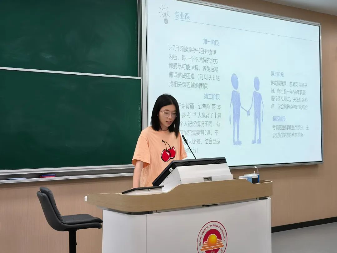 邀请了公事管2001林昕、劳社保2001甘也竣枫、房地产2001程习涵三位优秀的同学进行经验分享。他们根据自身实际情况,为同学们分享了自己的“独家秘笈”,同学们听完后受益匪浅。