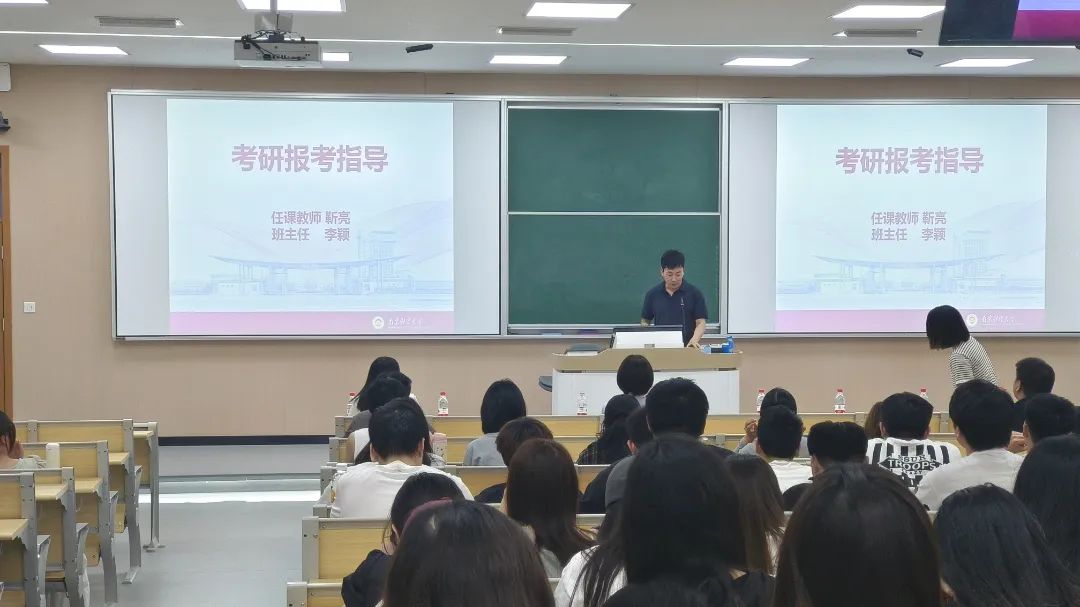 接着,靳亮老师进行“考研报考指导”。他从自身经验出发,着重强调了制定学习计划的重要性,并指出同学们应该利用好每一个碎片化的时间,结合自身实际情况做好全身心准备,做到有规律、有效率地备战考研。靳亮老师建议同学们扎实基础、锁定范围,以强大的意愿形成强大的动力,支撑自己坚定地走下去。