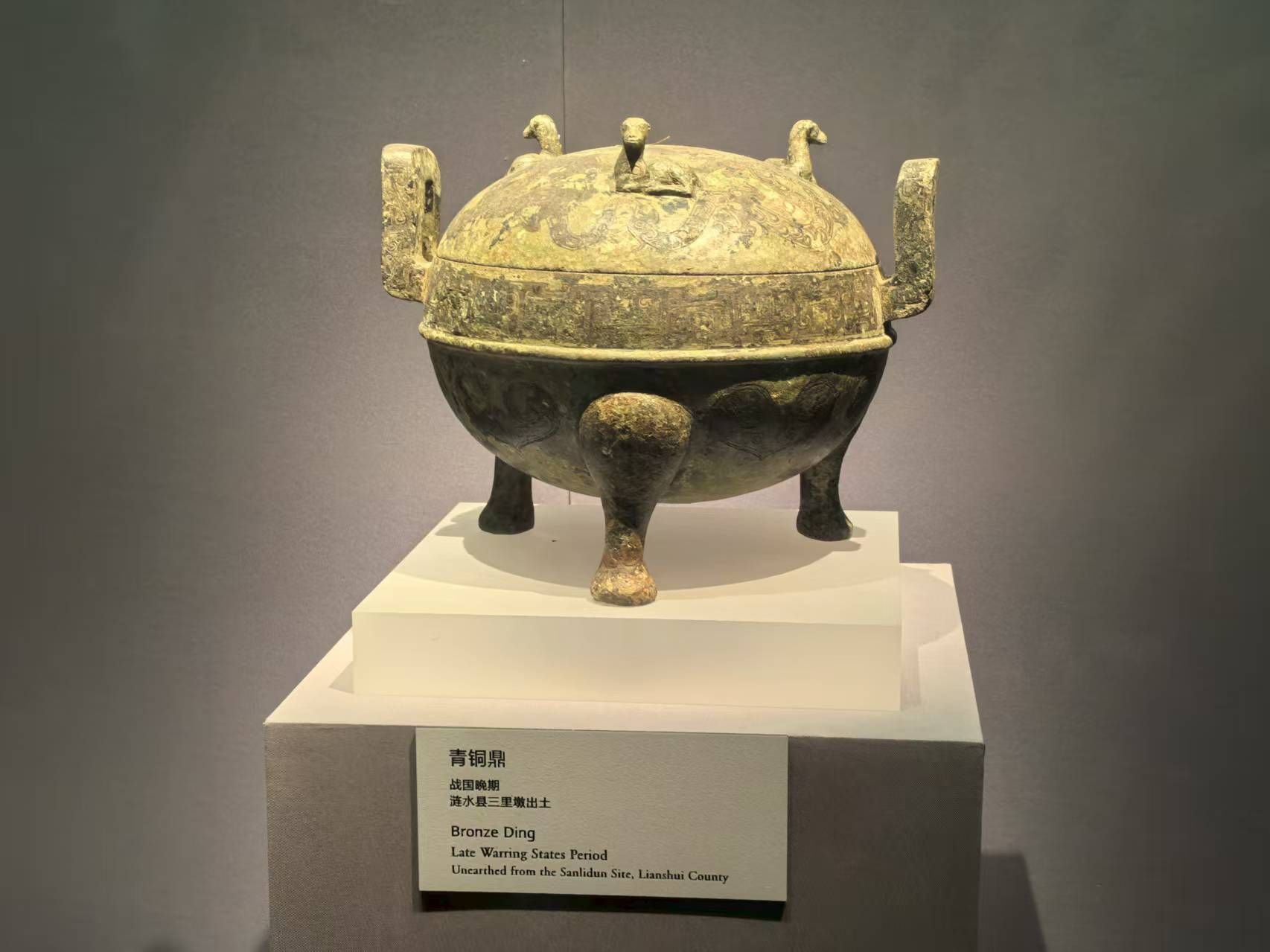 在战国文物展区,一件战国晚期青铜鼎吸引了团队的注意。这件青铜鼎造型庄重,纹饰精美,鼎身饰有蟠螭纹,鼎足稳健有力,体现了战国时期青铜铸造技术的高超水平。孙乐惟从不同角度拍摄这件青铜重器,捕捉其历经千年仍保存完好的细节。