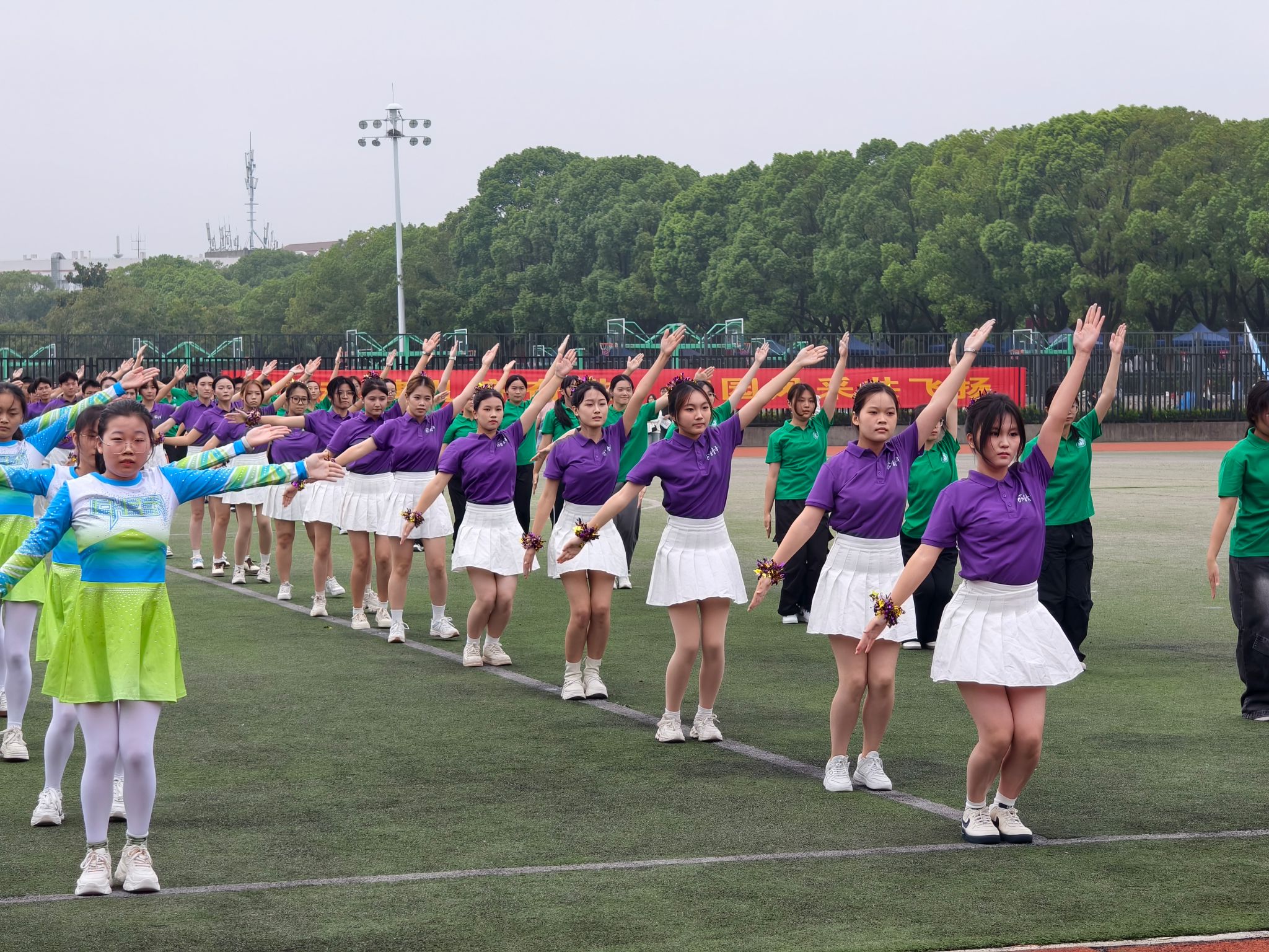 广播操队伍身着紫色的公管院院服和纯净的白色下装,尽显青春活力。飞扬的裙摆,有力的伸展,他们整齐划一的身影,是赛场上跃动的诗行。同时,JRKAN直播网