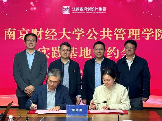 党委副书记孙启与江苏省城市规划设计研究院有限公司副总经理陈科共同签署大学生就业实习实践基地协议,陈翔书记与董向锋部长共同签署党建共建协议并见证实习基地签约。