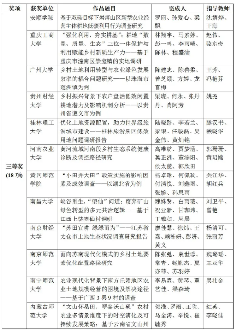 选送的参赛作品《“苏田宜耕 绿绿而为”---江苏省太仓市土地国情生态研究》(成员:廖佳慧、徐炜、王嘉、赖秭妍、彭妍、黄义;指导教师:杨清可、张丽芳),首次参赛并荣获全国三等奖。