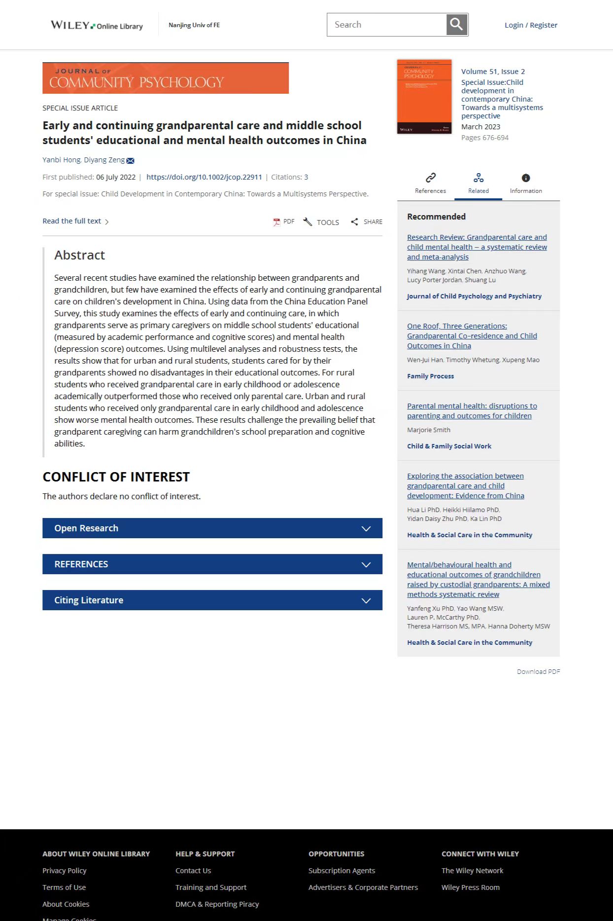 论文标题:早期及持续隔代抚养对中国中学生学业成绩与精神健康的影响(Early and continuing grandparental care and middle school students' educational and mental health outcomes in China)