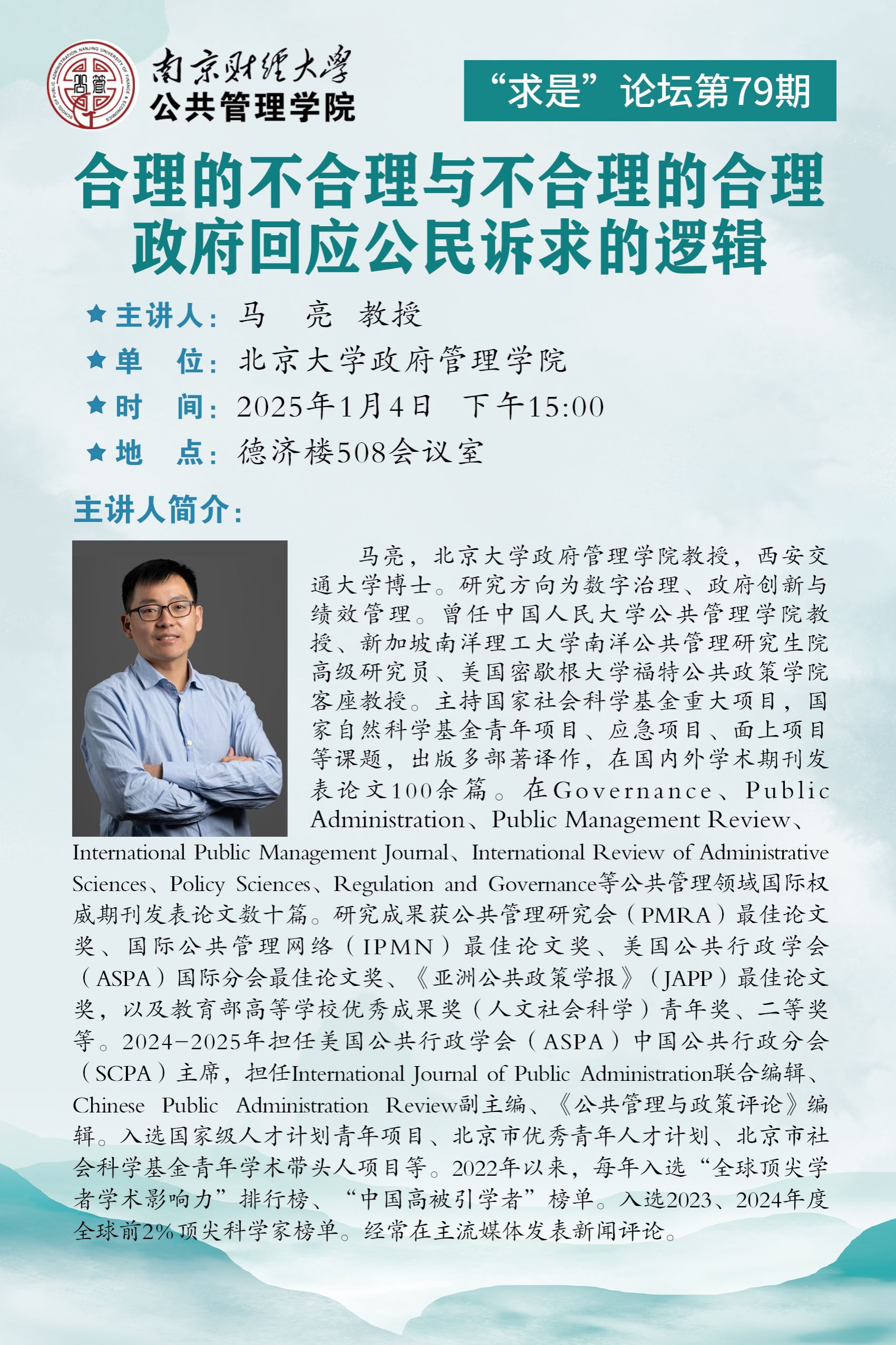 【讲座预告】“求是”论坛第79期