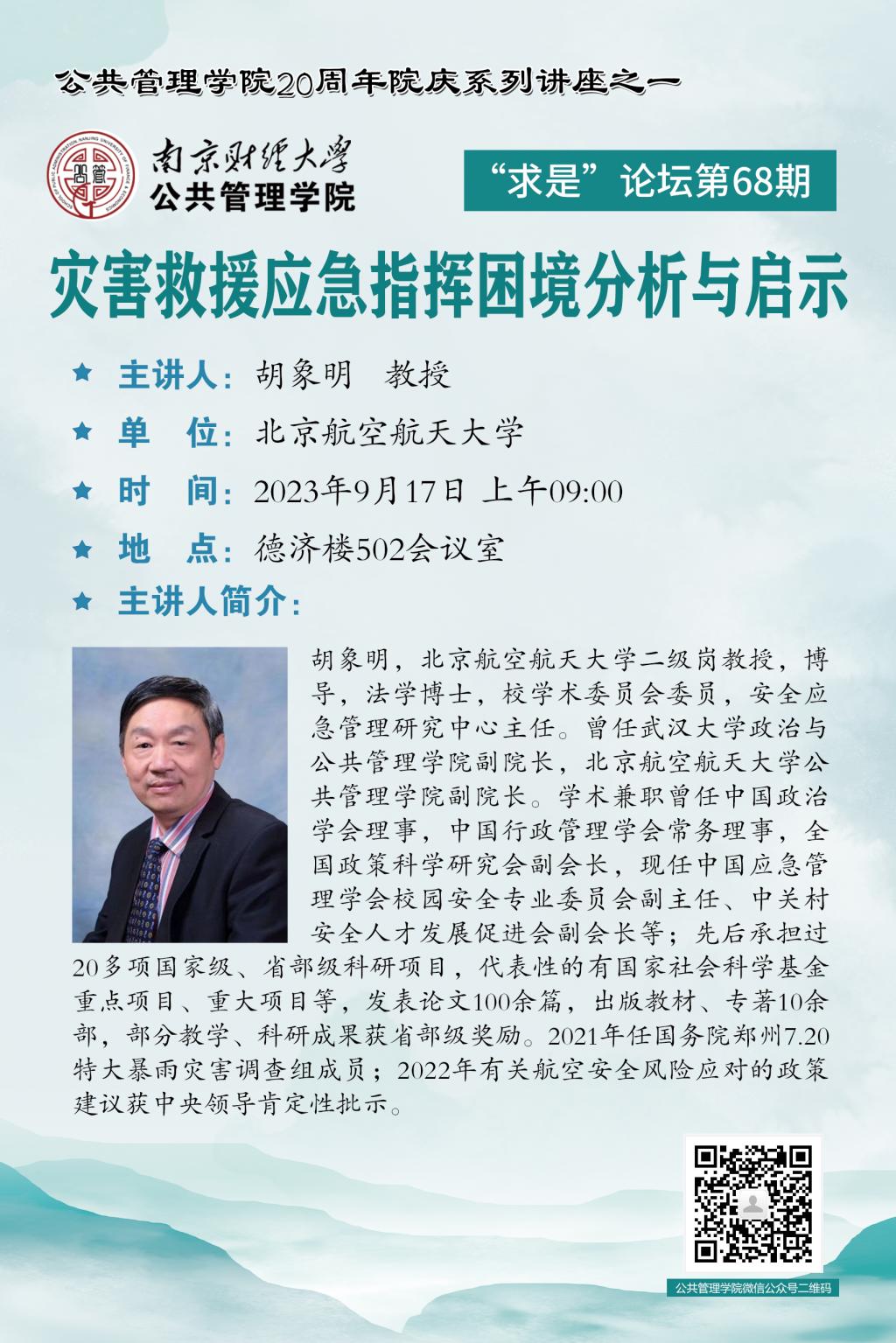 【讲座预告】“求是”论坛第68期