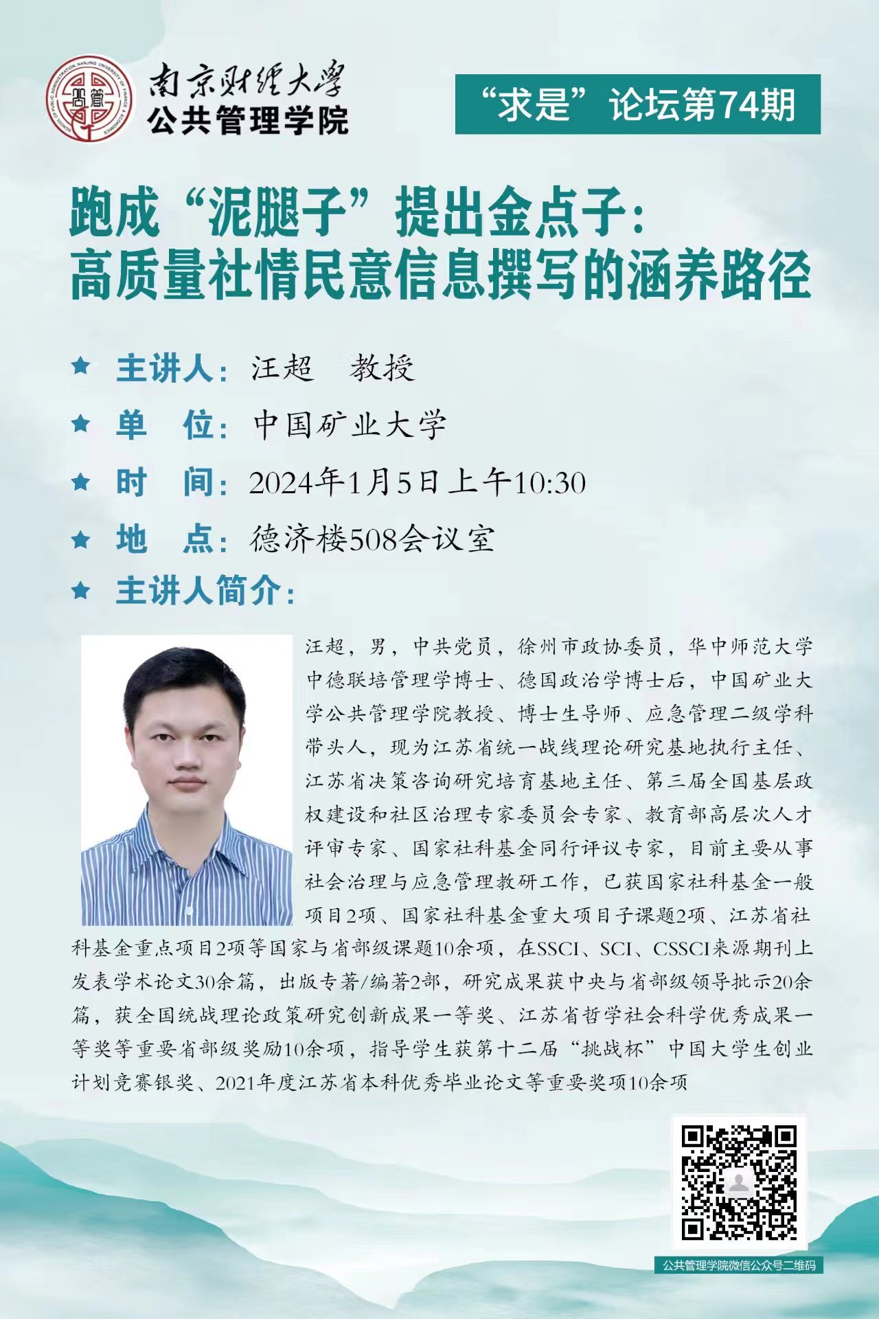 【讲座预告】“求是”论坛第74期