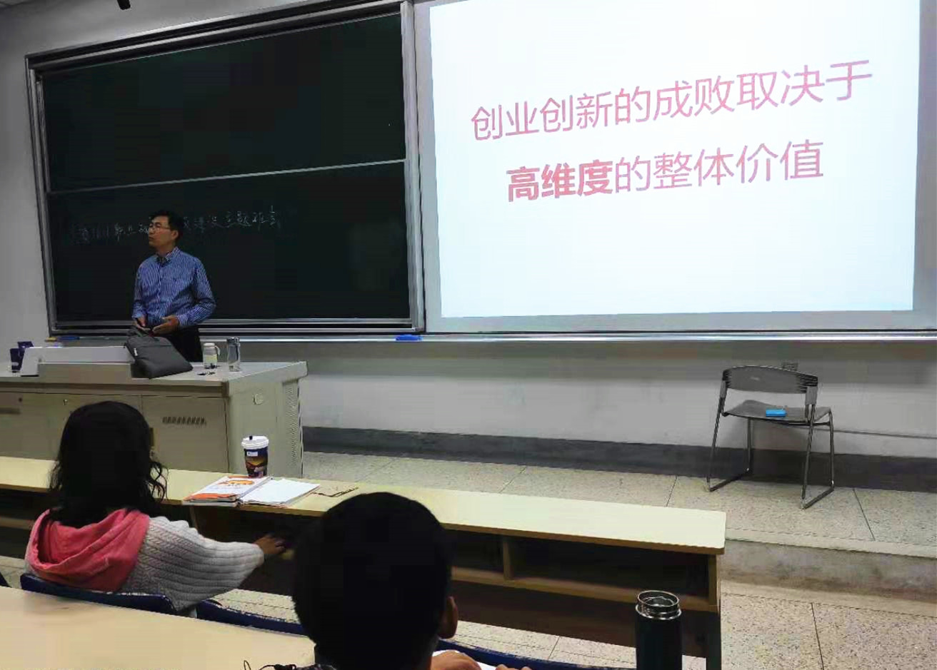 陈广博士首先从理论上诠释了近年来创业企业成功的秘密——高维度切入。然后从美国学者劳特朋的营销4C理论出发,引出了其创业分析的4C理论:顾客(Customer)、成本(Cost)、架构(Construction)和互动(Communication)。结合其参与的创业过程的龙虾E站和甩甩宝宝两个案例,分析了其在创业过程中的客户关系、成本控制、组织架构和实现与客户之间的互动与利益协同的成功经验。讲座过程中,陈博士分析案例深入浅出,受到广大学生的好评。讲座结束后,陈博士还与学生就创新创业问题与学生进行了个别交流。