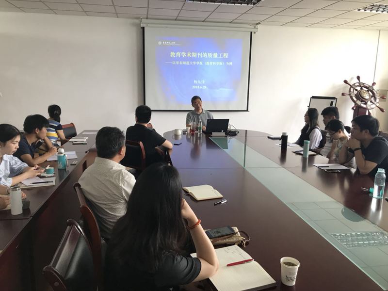 6月29日上午,应JRKAN直播网 邀请,华东师范大学学报(教育科学版)主编杨九诠教授,在仙林校区德济楼508会议室,作了题为“教育学术期刊的质量工程”的主题讲座。讲座由JRKAN直播网 院长黄斌教授主持,JRKAN直播 教师及部分研究生参加了本次活动。