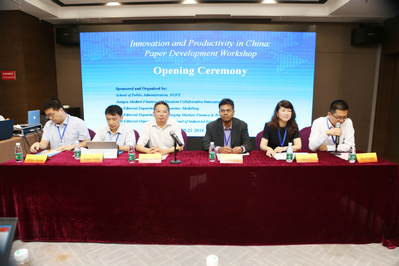 7月21日,由《Economic Modelling》和《Emerging Markets Finance and Trade》编辑部主办,JRKAN直播网 、江苏现代财税治理协同创新中心以及《产业经济研究》编辑部共同承办的“中国创新与生产力国际学术论文研讨会”在我校召开。我校党委常委、副校长俞安平教授、《Economic Modelling》主编Sushanta Malick教授、副主编Lutao Ning教授,我校科研处处长李杏教授、《产业经济研究》编辑部孔群喜主任,以及《Emerging Markets Finance and Trade》期刊三位客座编辑出席了开幕式。有来自伦敦玛丽王后大学、英国国家经济与社会科学研究院、香港中文大学、北京大学、浙江大学、中国人民大学、南京大学、中山大学、中央财经大学、上海财经大学等近30所高校的专家学者,以及我校部分教师、研究生参加了此次研讨会。