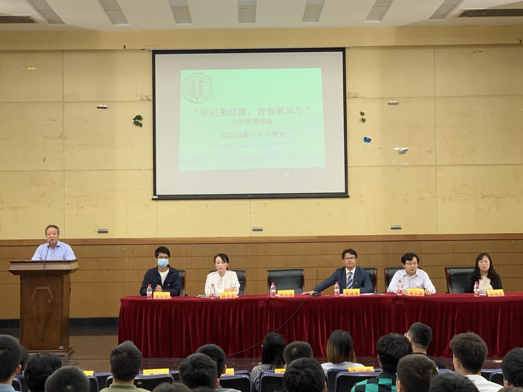 于2021年10月13日上午在德济楼二楼报告厅举行了2021级新生入学教育大会,会议由院党委书记胡永远主持,副院长(主持工作)黄建伟、院党委副书记张荣霞、系主任等出席了大会。