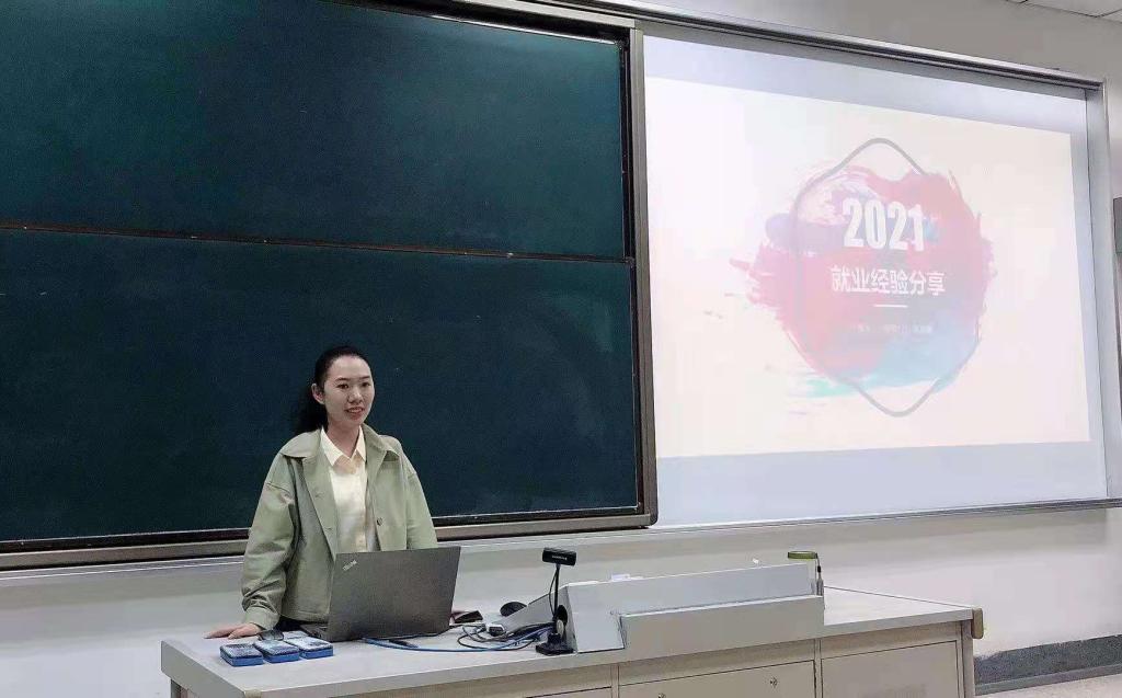 在就业经验分享方面,黄晓晨同学结合自身经历展开讲解。她指出就业前需要明确就业动机、就业地点和就业目标,要充分利用单位官网、亲朋好友、智联招聘、微信公众号以及招聘会等渠道充分获取工作单位的信息,还要尽可能增强自身就业优势,例如考取雅思托福等技能证书。另一方面要充分重视面试礼节和技巧:仪容仪表,讲究干净整洁;谈吐措辞,讲究真实情感;行为举止,讲究得体大方。