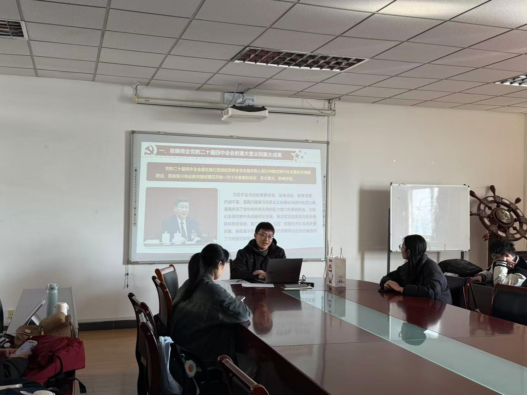 1121日中午12:40,支委会在德济楼508会议室召开支部大会,由党支部书记史晟主讲党课,专题宣讲党的二十届四中全会精神,推动全会精神落地生根。