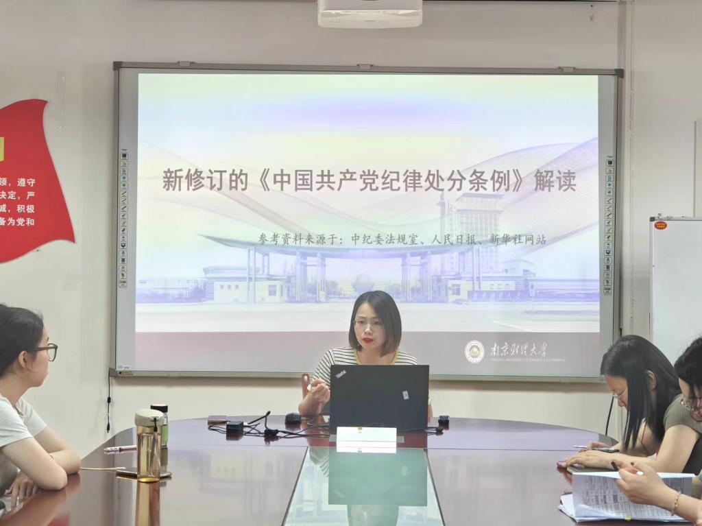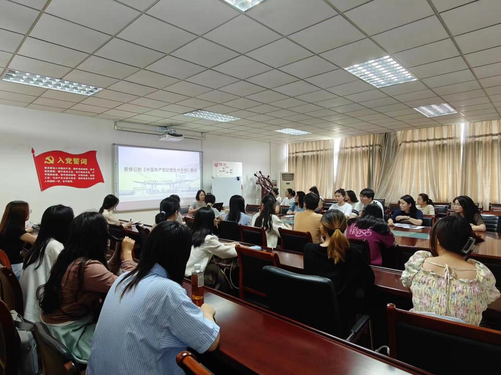 李小燕老师以“解读新修订的《中国共产党纪律处分条例》”为主题,围绕修订的原因、修订的重点内容和学习的目标三个方面讲授党课,展示和讲解了16项与日常工作和生活紧密相连的内容。同时李老师也为党员们讲述了条例的修改既是贯彻落实习近平新时代中国特色社会主义思想的具体行动,也是用严明的纪律管全党治全党的现实需要,更是总结从严管党治党经验、实现制度与时俱进的实践要求。此次会议的学习引导大家准确把握条例修订的重点内容,明确日常言行的衡量标尺,把遵规守纪内化于心、外化于行;同时党员同学们通过学习违纪违规典型案例,逐渐增强了自身的遵纪守法意识。