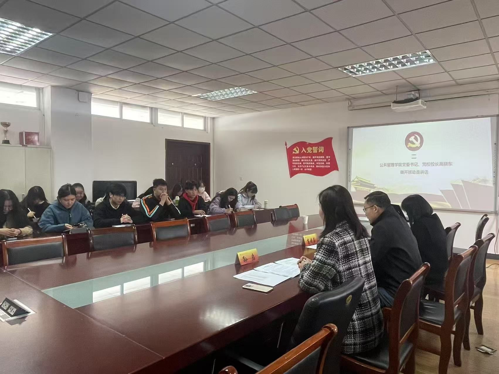 党委书记、分党校校长高晓东,党委副书记、分党校副校长孙启,研究生党支部书记丁洁以及培训班共计17名学生参加,仪式由孙启副书记主持。