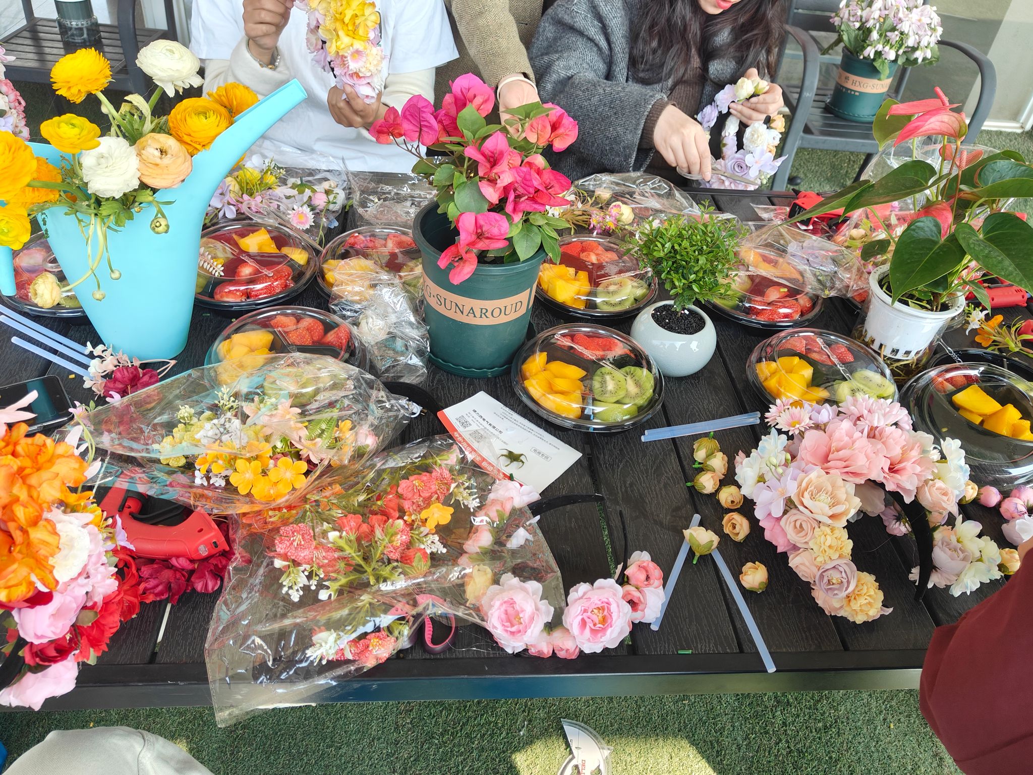 活动伊始,同学们用生动的语言讲述了簪花的历史由来,一朵朵鲜花在手中绽放,仿佛诉说着每个人心中独一无二的故事。随后,同学们详细介绍了簪花的制作手法,老师们认真聆听,并在同学们的引导下,开始挑选心仪的鲜花,为后面的手工制作做准备。